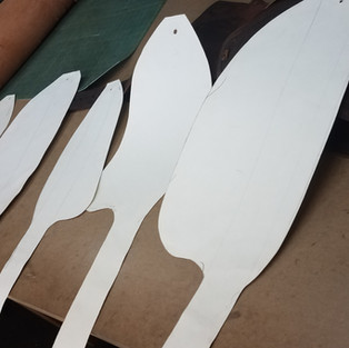Next step was to try to decide on style for both of us. Ollie wants to cut down on weight and cut it down as much as possible. We looked over all of Randy’s patterns trying to decide what shape and rigging style and fender style and talked about stirrup options.
